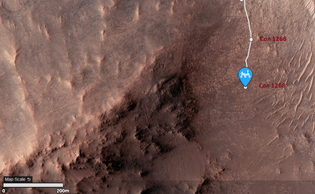 Сегодня, 13 сентября 2024 (1268 сол) - большой пробег. Согласно JSON  ровер проехал "dist_m": 165.787, поднялся с
