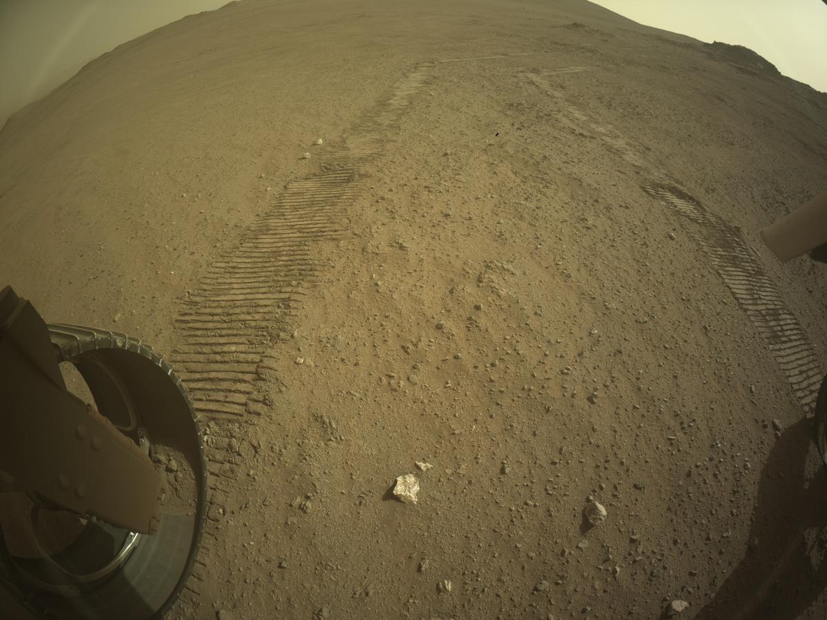 ЦитироватьМарсоход НАСА Mars Perseverance получил это изображение области за собой с помощью задней левой  камеры для предотвращения опасности  - Rear Left Hazard Avoidance Camera..