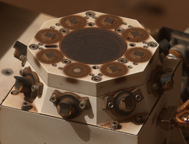 На самом деле ровер заканчивает свою сессию с исследуемым камнем и отправляется дальше. В 6 утра LMST 27 октября, а вернеее  в 1311 сол ровер включил свой прибор PIXL и сделал финальный снимок этого камня: