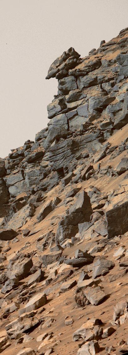 Между тем наблюдатель 65dBnoise увеличил известный снимок склона Пика Туркино (куда еще поедет ровер), действительно, опасно висит камень...