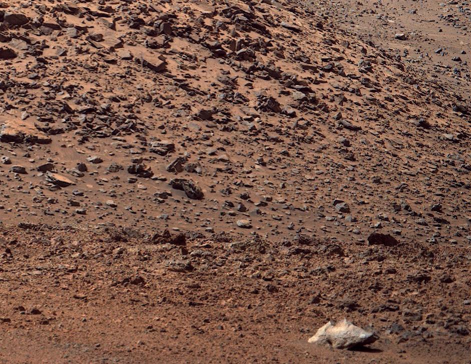 Еще больше белых  (беловатых) камней вокруг #Perseverance. Этот 13-сантиметровый камень находится примерно в 3,25 м от камеры MastCam-Z.