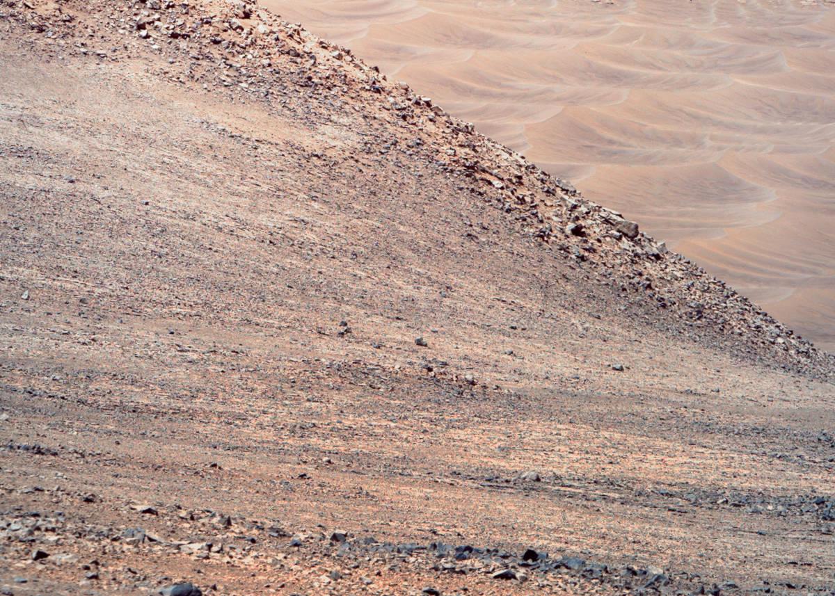 Склон Берри Хил - Berry Hill, как его видит с мачты ровера камера MastCam-Z  #Perseverance с RMC 64.2082, за 25 метров до входа в Мелководный залив -  Shallow Bay.