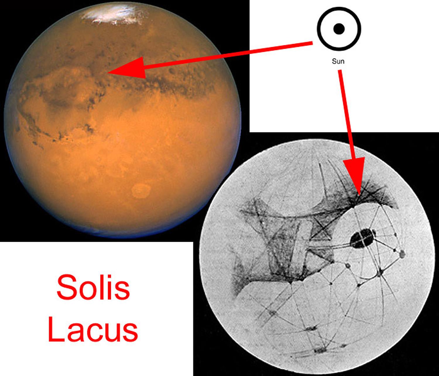 Это означает, что марсианские названия начинались бы с мест, расположенных на дальнем востоке карты Птолемея, и названия продвигались бы к западным местам. Наши названия должны быть распределены именно так. Но с чего начинается схема на Марсе, если нет очевидного места для начала?  Скиапарелли нашел идеальную отправную точку. Это традиционные астрономические символы Солнца, Луны и планет. Скиапарелли нашел символ Солнца на Марсе. #Марс #астрономия