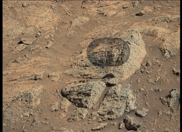 Такая порода. Сегодня, 23 декабря 2024 в 1366 сол пребывания на Марсе, движений ровера не было, счетчик движений RMC 64.2278 остался прежним, ровер оставался на месте и снимал, необработанный снимок: