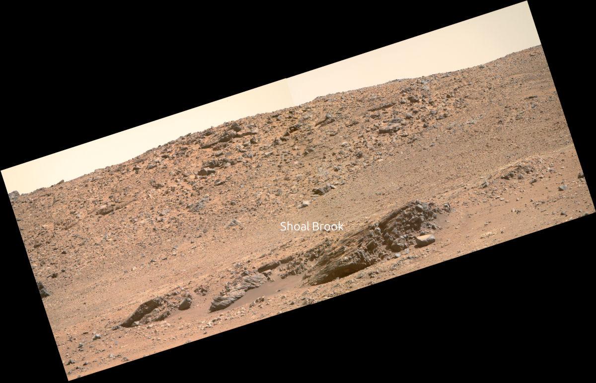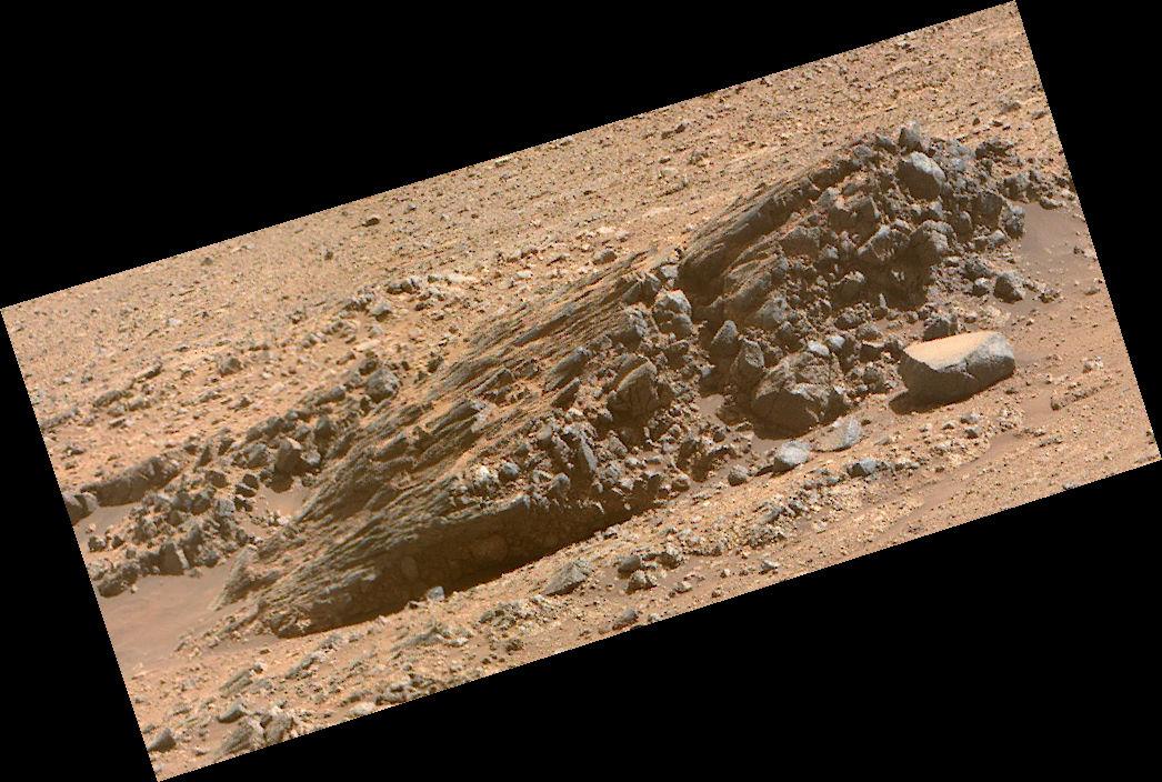 Это обнажение находится примерно на 5 м ниже вершины обода, в 85 м к западо-северо-западу от холма Lookout Hill. Возможно, это коренная порода, поднятая в результате удара, который создал кратер Езеро. Но IANAG.