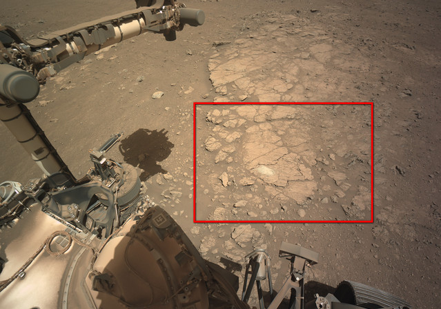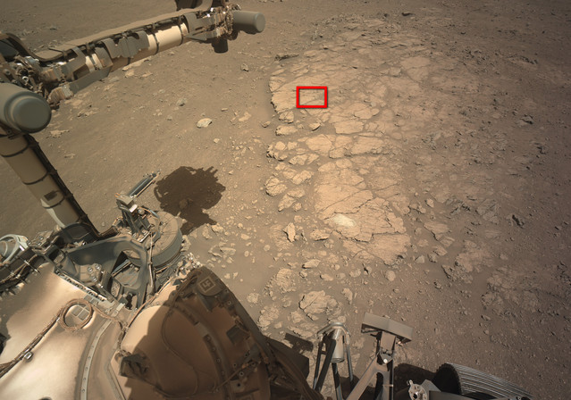 ЦитироватьМарсоход НАСА Mars Perseverance получил это изображение с помощью камеры SHERLOC WATSON, расположенной на турели на конце роботизированной руки марсохода.
