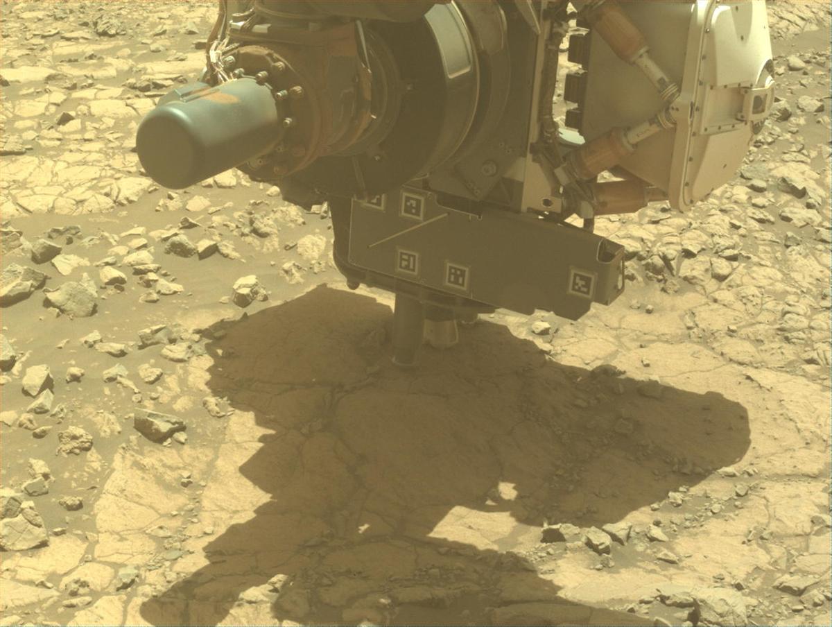 Сегодня, 22 января 2025, сол 1395, Лаборатория реактивного движения JPL продолжила выкладывать снимки после большого перерыва. И вот в дополнение к снимку абразивного пятна, которое было сделано 1 января 2025, сол 1375, см. пост выше, появился сегодняшний снимок нового абразивного пятна, вот он: