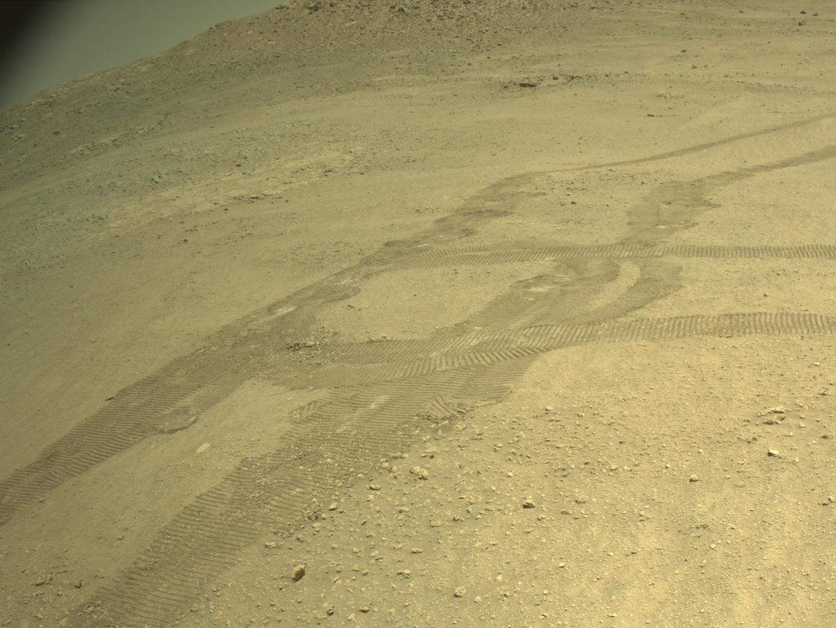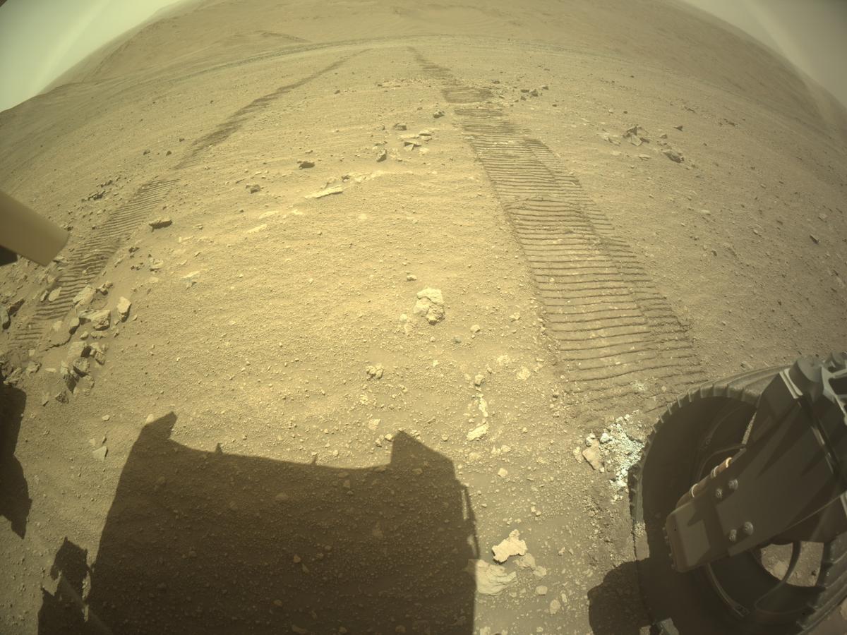 ЦитироватьМарсоход НАСА Perseverance получил это изображение области за собой с помощью своей задней правой камеры для предотвращения опасности - Rear Right Hazard Avoidance Camera..