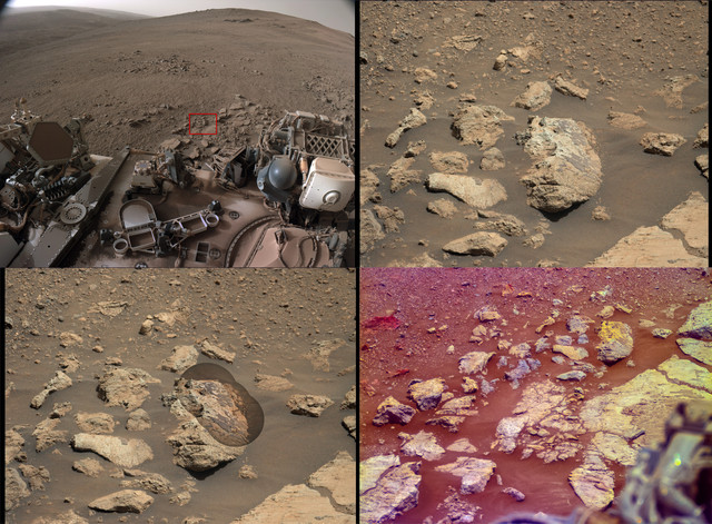ЦитироватьМарсоход НАСА Perseverance получил это изображение с помощью камеры SHERLOC WATSON, расположенной на турели на конце роботизированной руки марсохода.