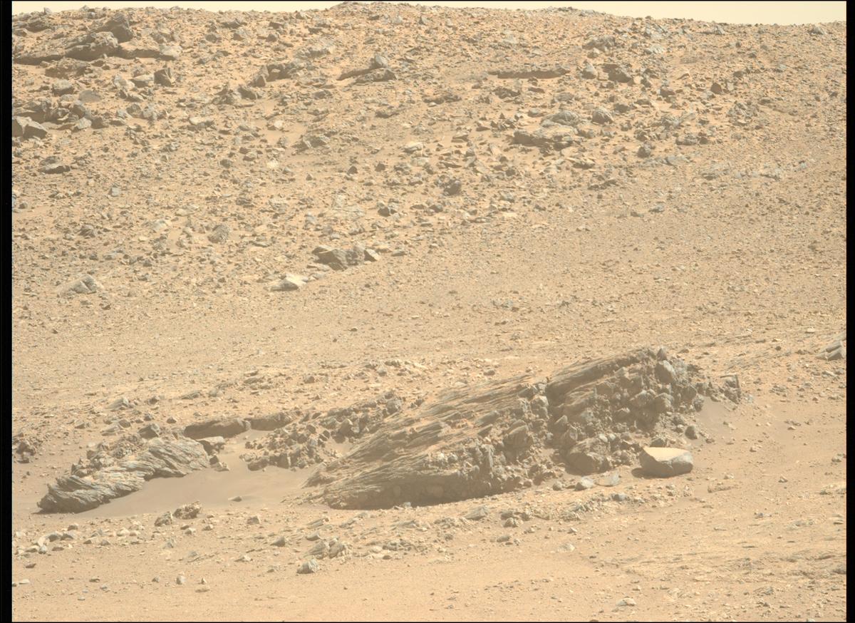 Сегодня, 26 января 2025 на 1399 сол ровер не делал каких то больших движений и оставался на месте, снимал окружающую природу. Вот этот слоистый камень кажется уже был снят в предыдущий приезд. Ничего страшного, вот он. Снимок сделан камерой Mastcam-Z: