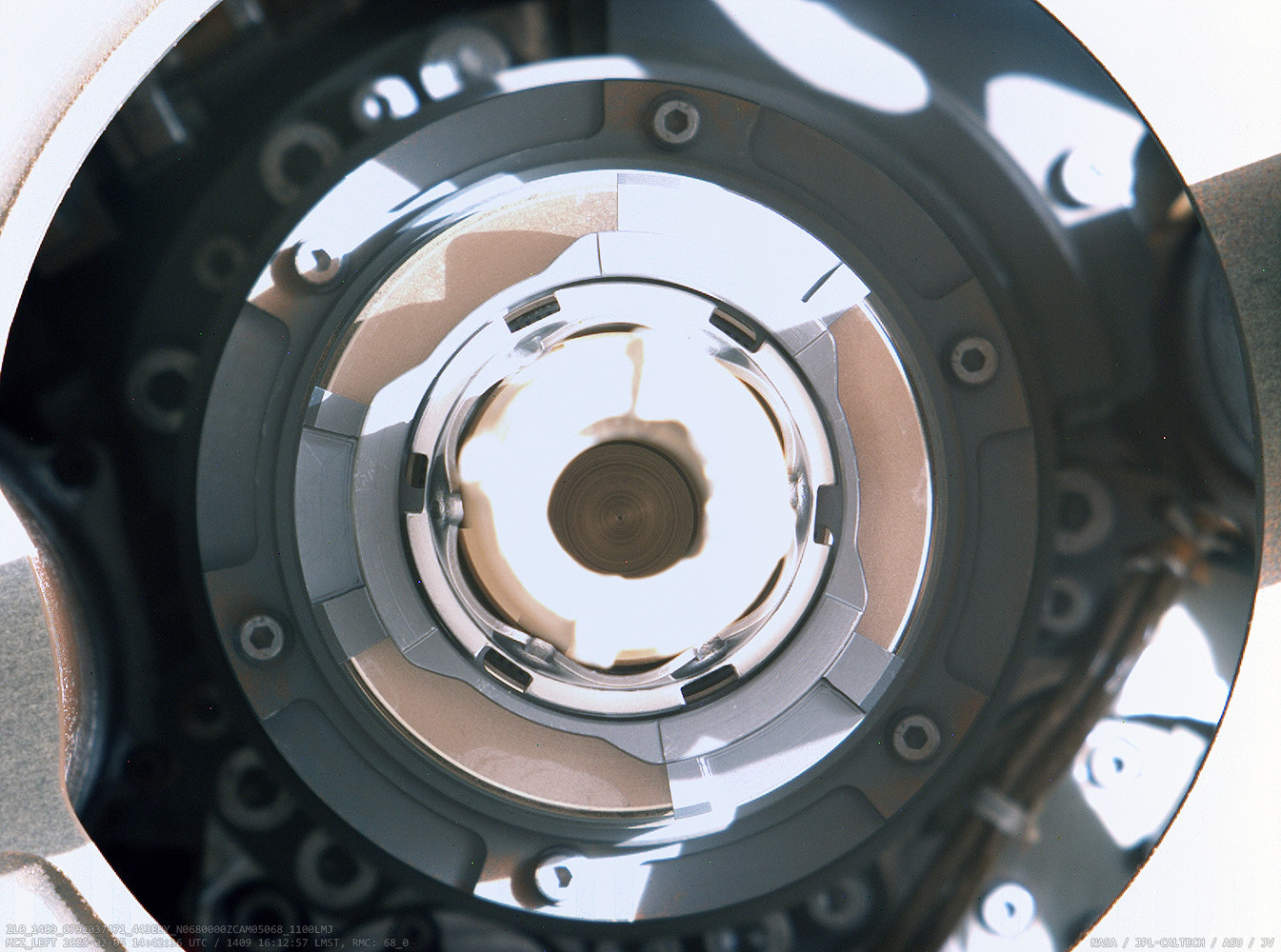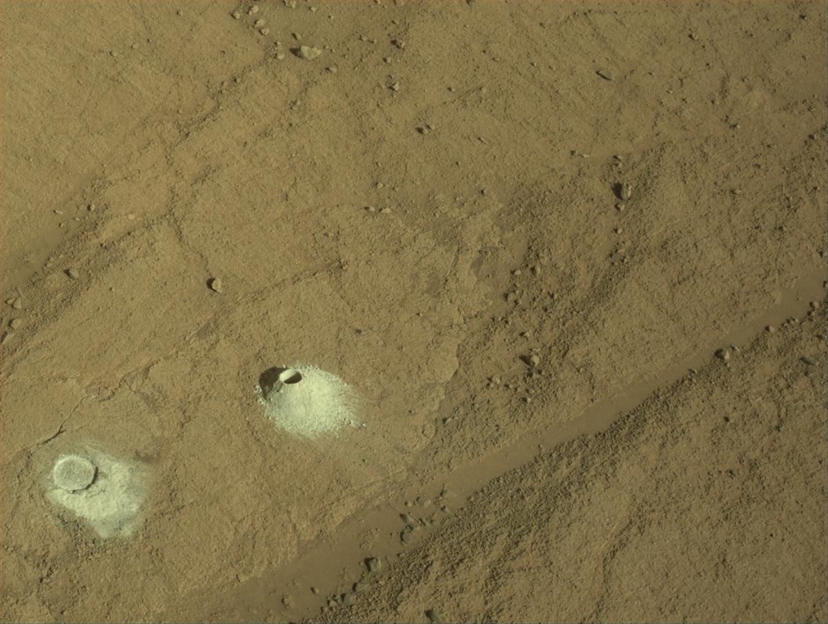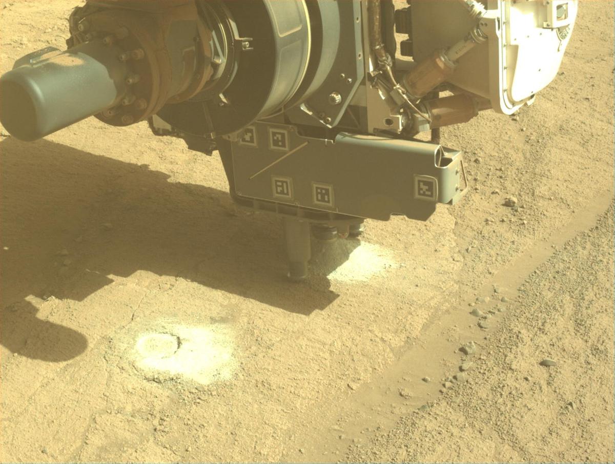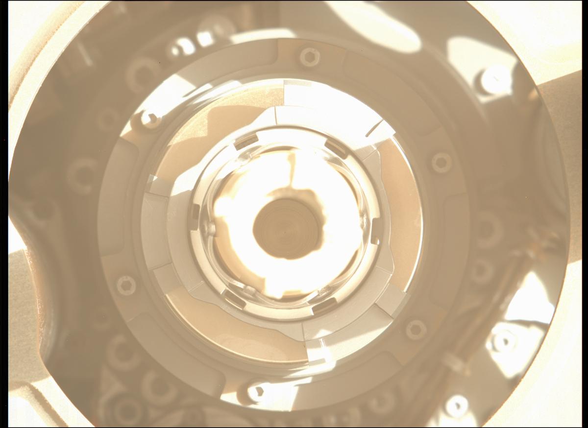 ЦитироватьМарсоход НАСА Mars Perseverance сделал этот снимок с помощью встроенной камеры системы кэширования образцов (CacheCam), расположенной в подкрылье ровера. Она смотрит вниз, в верхнюю часть пробирки с образцами, чтобы сфотографировать крупным планом отобранный материал и саму пробирку в процессе ее подготовки к герметизации и хранению.