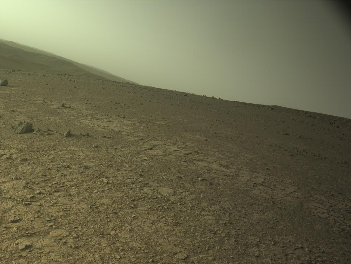 Сегодня, 03 марта на 1434 сол, ровер начал день с того, что изучал местность, которая расстилается перед ним через передние нижние камеры по предотвращению опасностей.