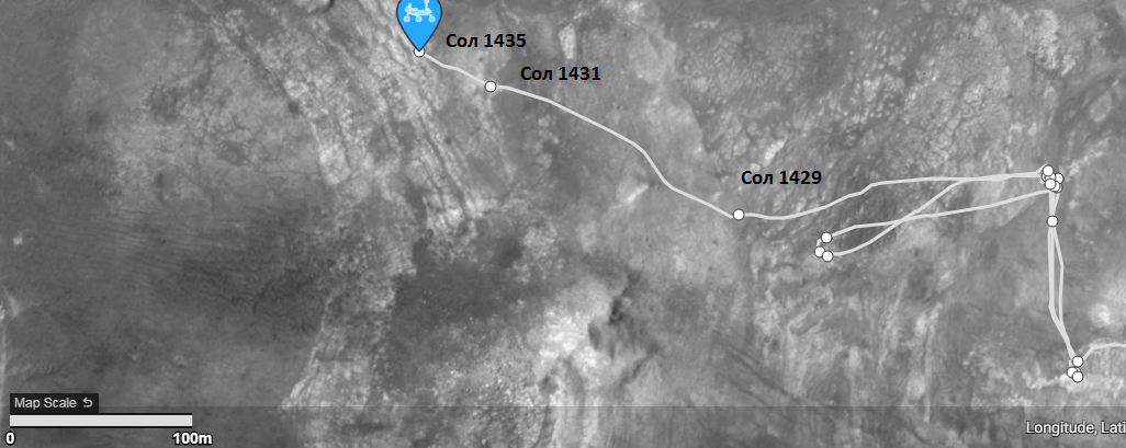 Сегодня 4 марта 2925, 1435 сол пребывания на Марсе и сегодня марсоход  продолжил движение.