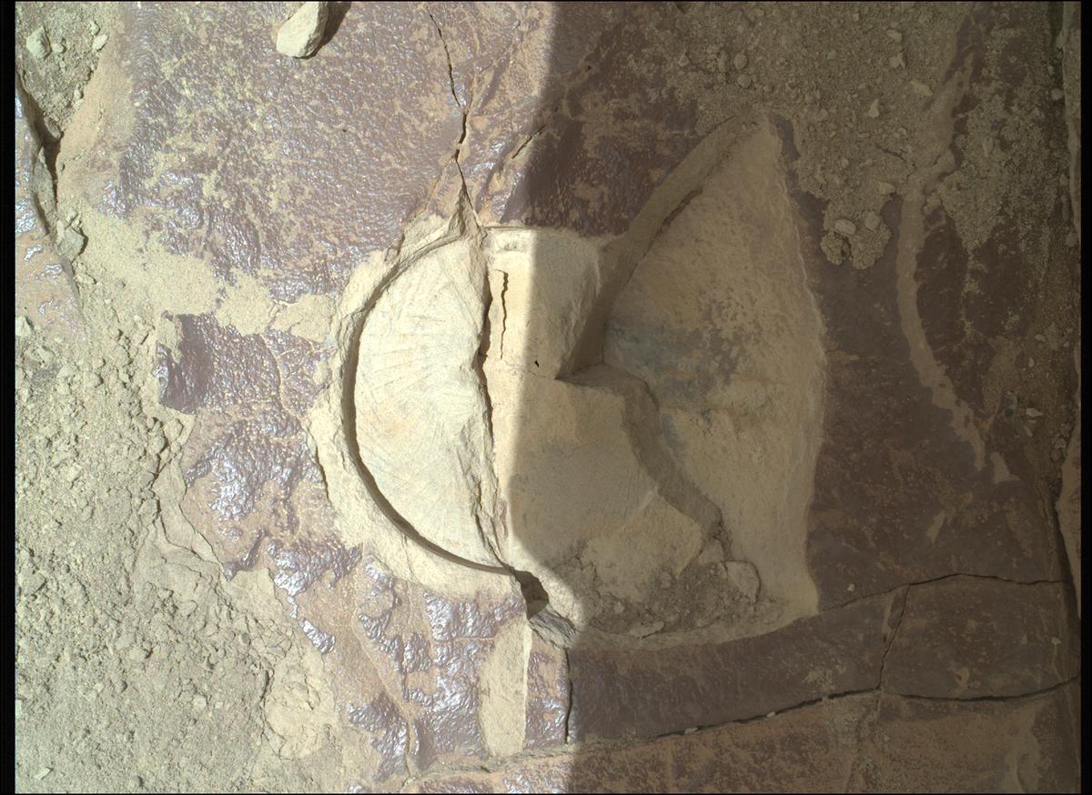 ЦитироватьМарсоход НАСА Mars Perseverance получил это изображение с помощью камеры SHERLOC WATSON, расположенной на турели на конце роботизированной руки марсохода.
