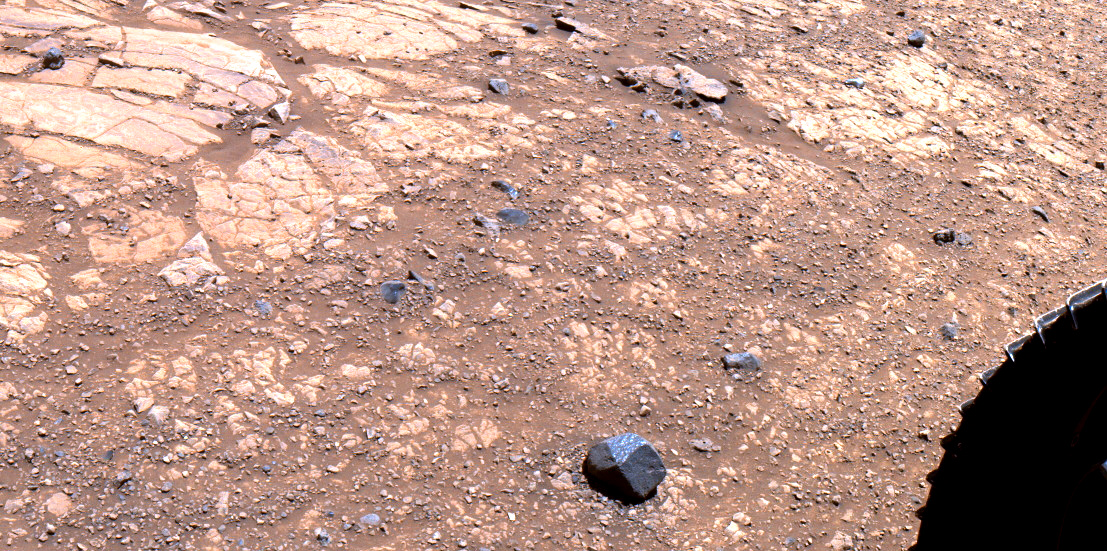ЦитироватьМарсоход НАСА Mars Perseverance получил это изображение с помощью встроенной правой навигационной камеры (Navcam). Камера расположена высоко на мачте ровера и помогает в управлении.