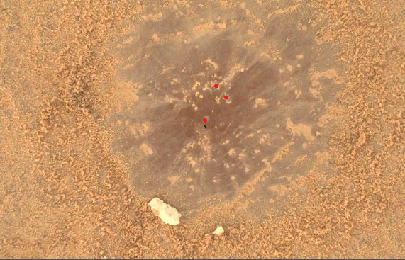 Вот эти три красных точки образующие букву "L", которые должны остаться на образце до земной лаборатории.