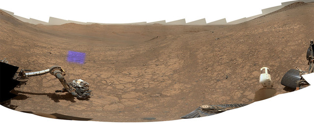 ЦитироватьМарсоход НАСА Perseverance получил это изображение с помощью камеры SHERLOC WATSON, расположенной на турели на конце роботизированной руки марсохода.