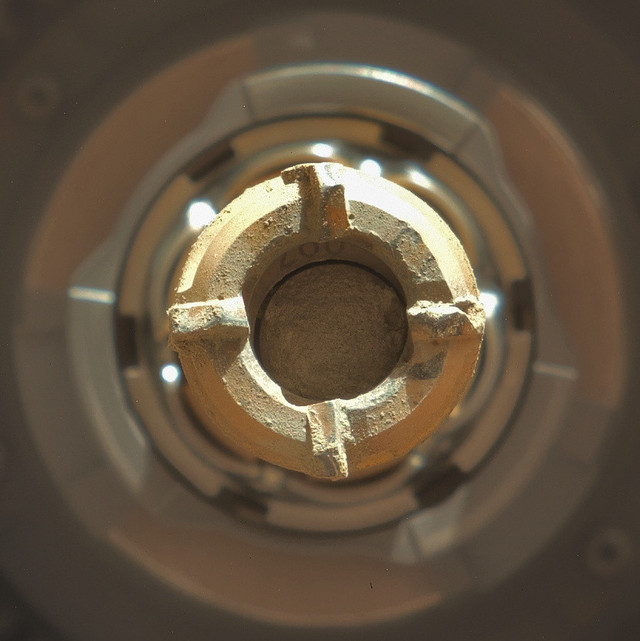 ЦитироватьМарсоход НАСА Mars Perseverance сделал этот снимок с помощью встроенной камеры системы кэширования образцов (CacheCam), расположенной в подбрюшье ровера. Она смотрит вниз, в верхнюю часть пробирки для образцов, чтобы сфотографировать крупным планом отобранный материал и саму пробирку в процессе ее подготовки к герметизации и хранению.