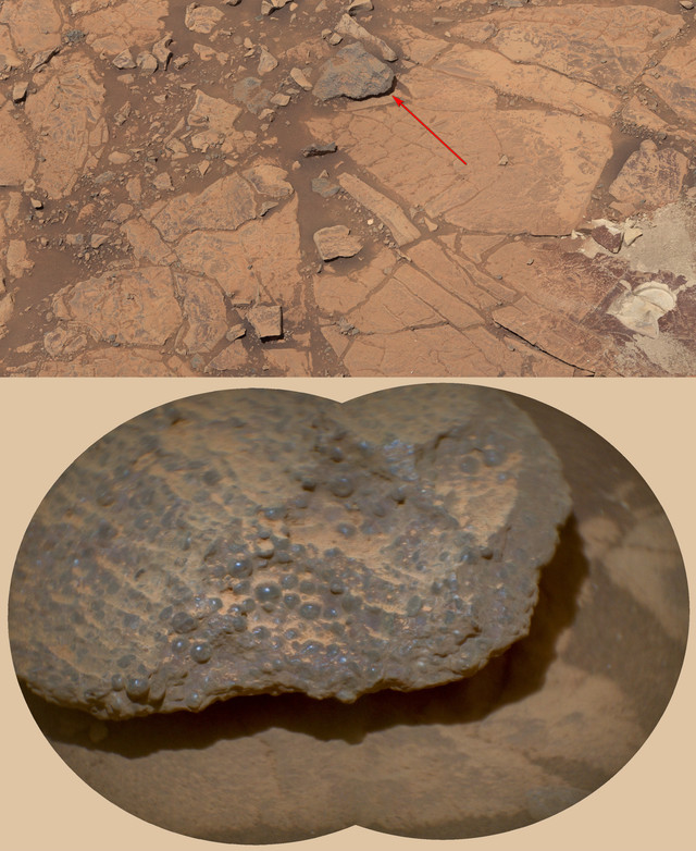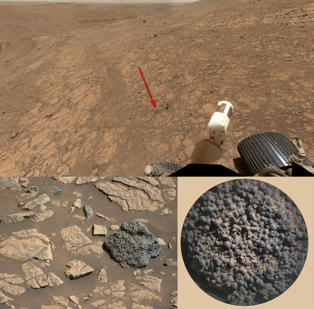 Потрясающий лектор из Caltech Майк Браун объясняет происхождение этих шариков с дырочками, которые кажется встречались ранее, когда по Марсу путешествовал  ровер Opportunity. Я ничего не понял, но когда он начинает лекцию и повторяет: blueberries, blueberries, blueberries, blueberries everywhere, (голубика, голубика, голубика везде) это внушает!