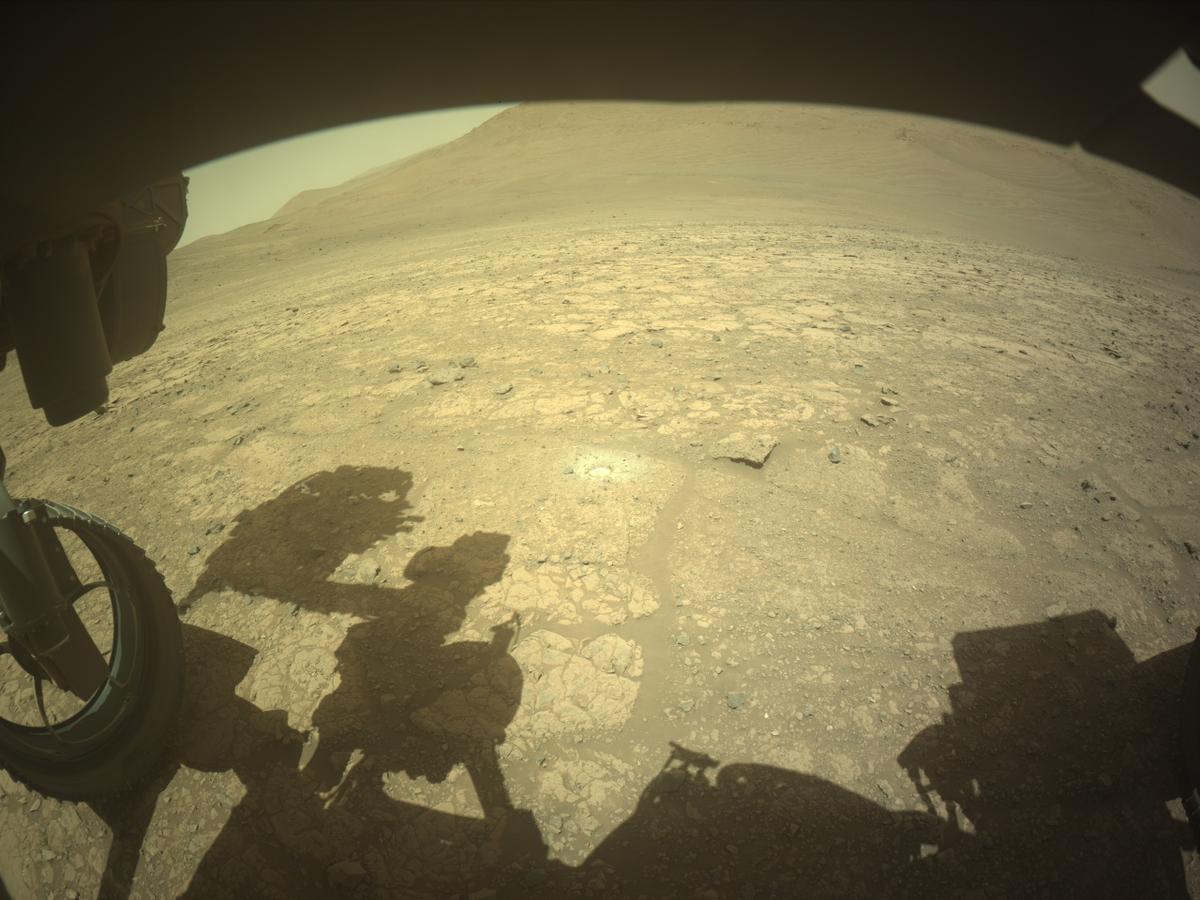 ЦитироватьМарсоход НАСА Perseverance получил это изображение с помощью левой навигационной камеры (Navcam). Камера расположена высоко на мачте ровера и помогает в управлении.