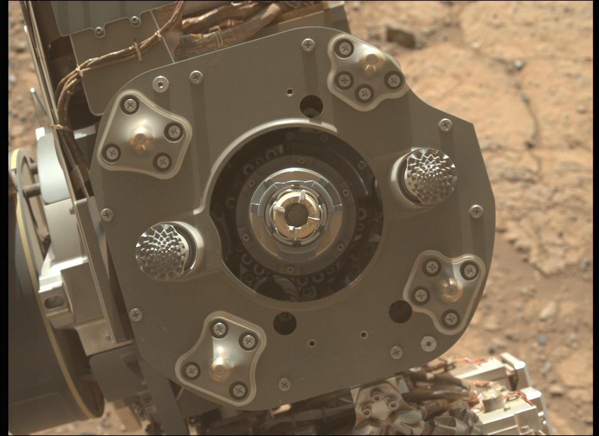 Откуда это следует?  Появились снимки бурового  (сверлильного) механизма от 3 мая (сол 1494), который в эти дни (солы) ничего не сверлил. Мы видим сверло, мы видим трубку в сверле и она заполнена... Скорее всего команда ровера решила провести манипуляции  с трубкой в которой находится 29 образец на свежем воздухе...Например потрясти ее для того, чтобы протолкнуть образец вниз. В ограниченном пространстве  внутри склада ровера это сделать все-таки затруднительно. Понятно, что трубка с образцом была в этом случае  изъята со склада и перемещена в сверло