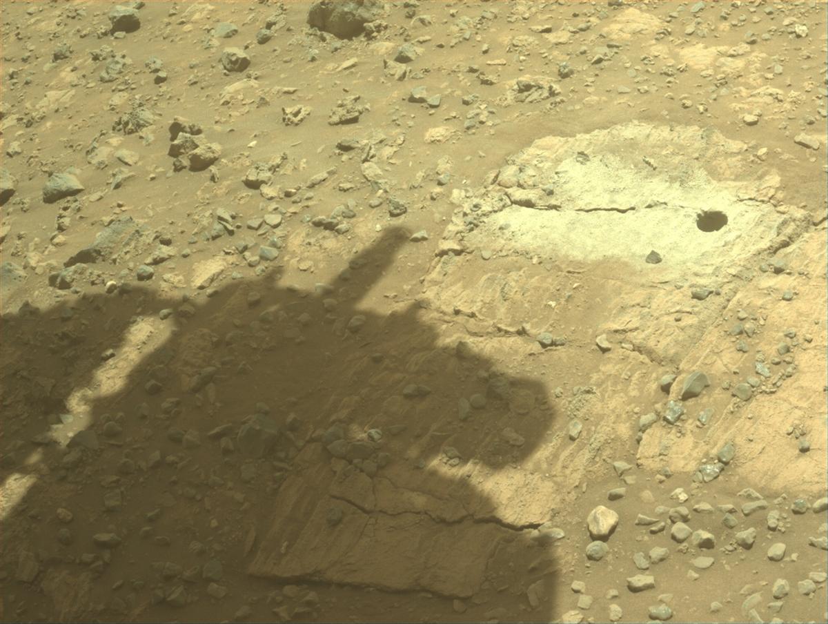 ЦитироватьМарсоход НАСА Perseverance получил это изображение с помощью встроенной камеры системы кэширования образцов (CacheCam), расположенной в подкрылье ровера. Она смотрит вниз, в верхнюю часть пробирки для образцов, чтобы сфотографировать крупным планом отобранный материал и саму пробирку в процессе ее подготовки к герметизации и хранению.