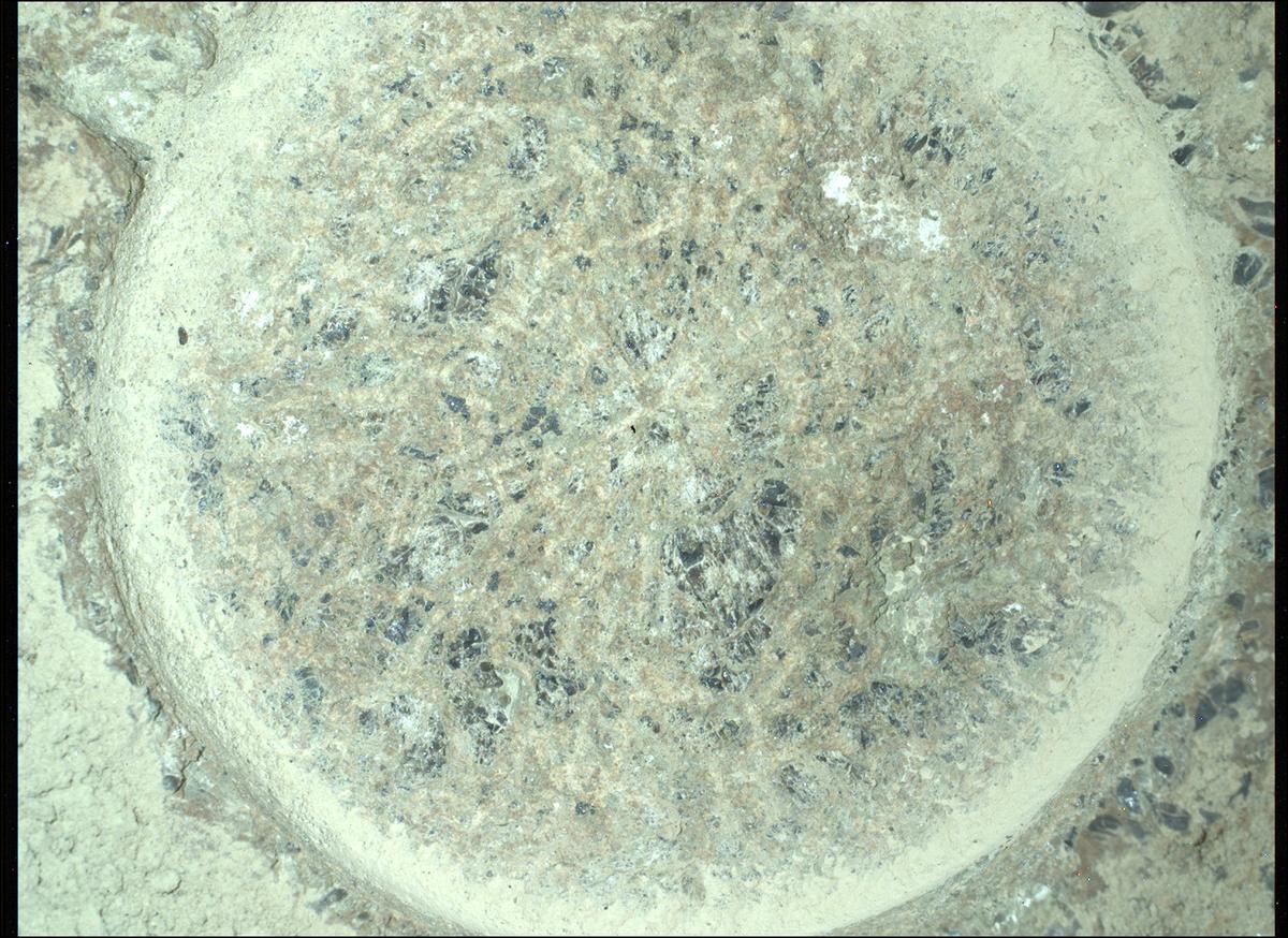 17 мая (сол 1507) марсоход помимо прочего уточнял калибровку по цветам, рассматривал  привезенные  образцы ткани для скафандров, в том числе изучал и уже не в первый раз привезенный с Земли срез метеорита, который, как считается имеет марсианское происхождение. Вот он: