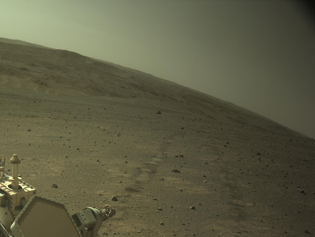 Наблюдатель Landru79  выложил 4 часа назад. Окружность на горизонте - это загрязнение на объективе левой навигационной камеры.