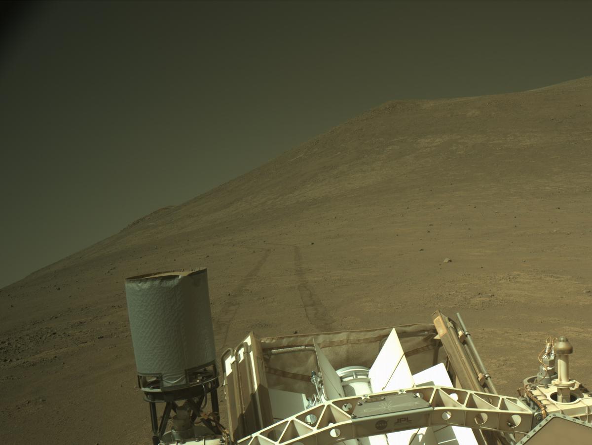 В неурочный час для себя NASA/JPL  выкладывает снимки. Вот мы видим корму ровера с антеннами прямой связи с Землей, видим следы марсохода оставшиеся позади.