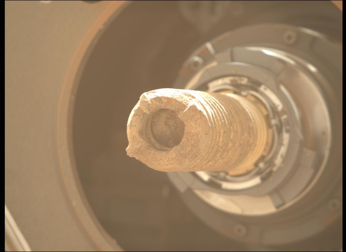 ЦитироватьМарсоход НАСА Mars Perseverance сделал этот снимок с помощью бортовой камеры системы кэширования образцов (CacheCam), расположенной в подбрюшье ровера. Камера смотрит вниз, в верхнюю часть пробирки с образцами, чтобы сфотографировать крупным планом отобранный материал и саму пробирку в процессе ее подготовки к герметизации и хранению.