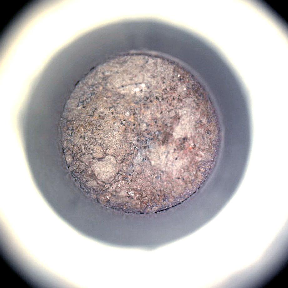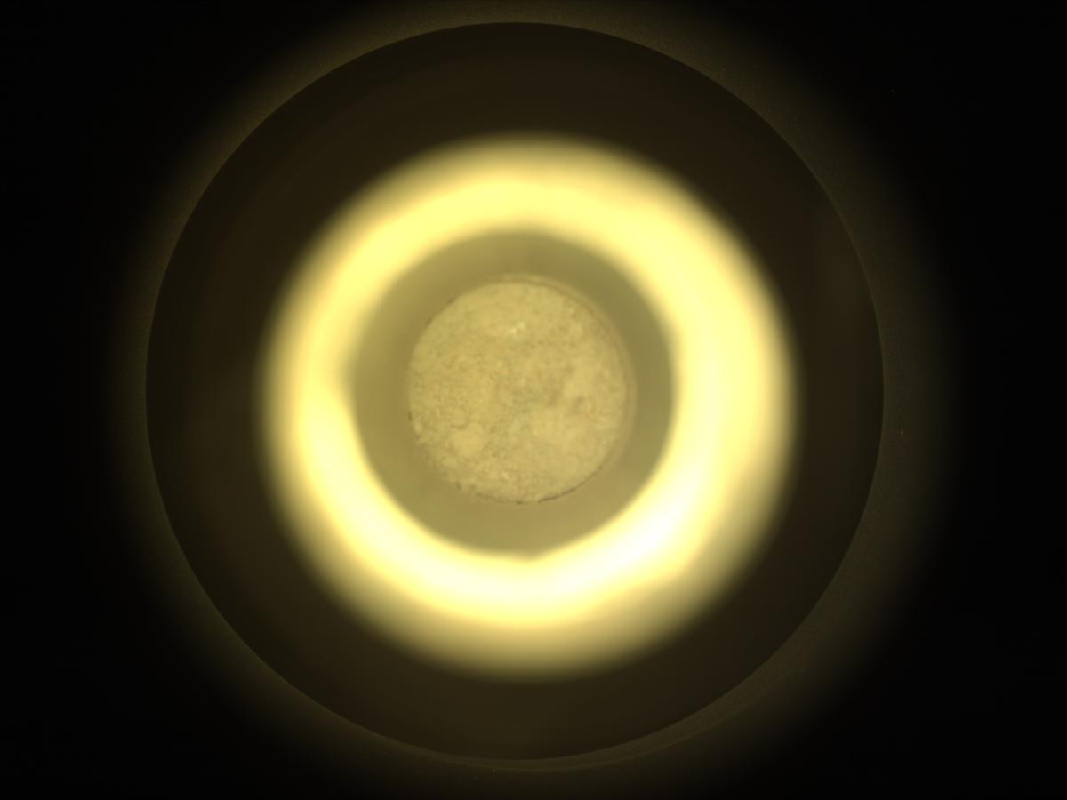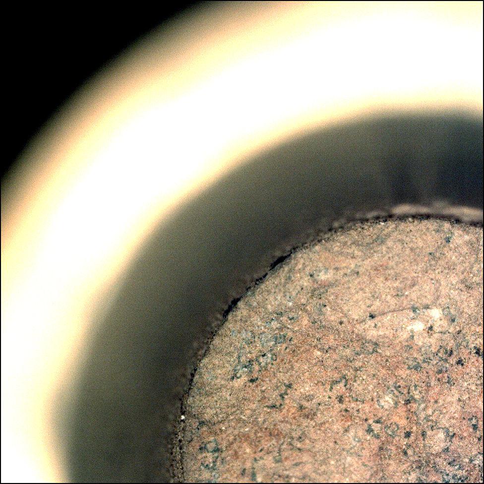 Только что поступили снимки CACHECAM с более высоким разрешением, на которых видно дно образца внутри трубки, как раз перед тем, как она была запечатана. На нижней поверхности видны кольца тиля - teal rings (по-русски вероятно это вкрапления бирюзового (или около того) цвета)