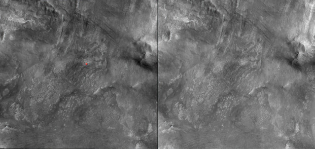 Более того, то, что я показываю как Witch Hazel Hill на изображении выше, на самом деле является обнажением на расстоянии около 200 метров, а не тем, которое я показываю на своих картах. Это место на карте находится гораздо ближе, примерно в 70 м от ровера, как показано на этой взломанной корректировке ниже.