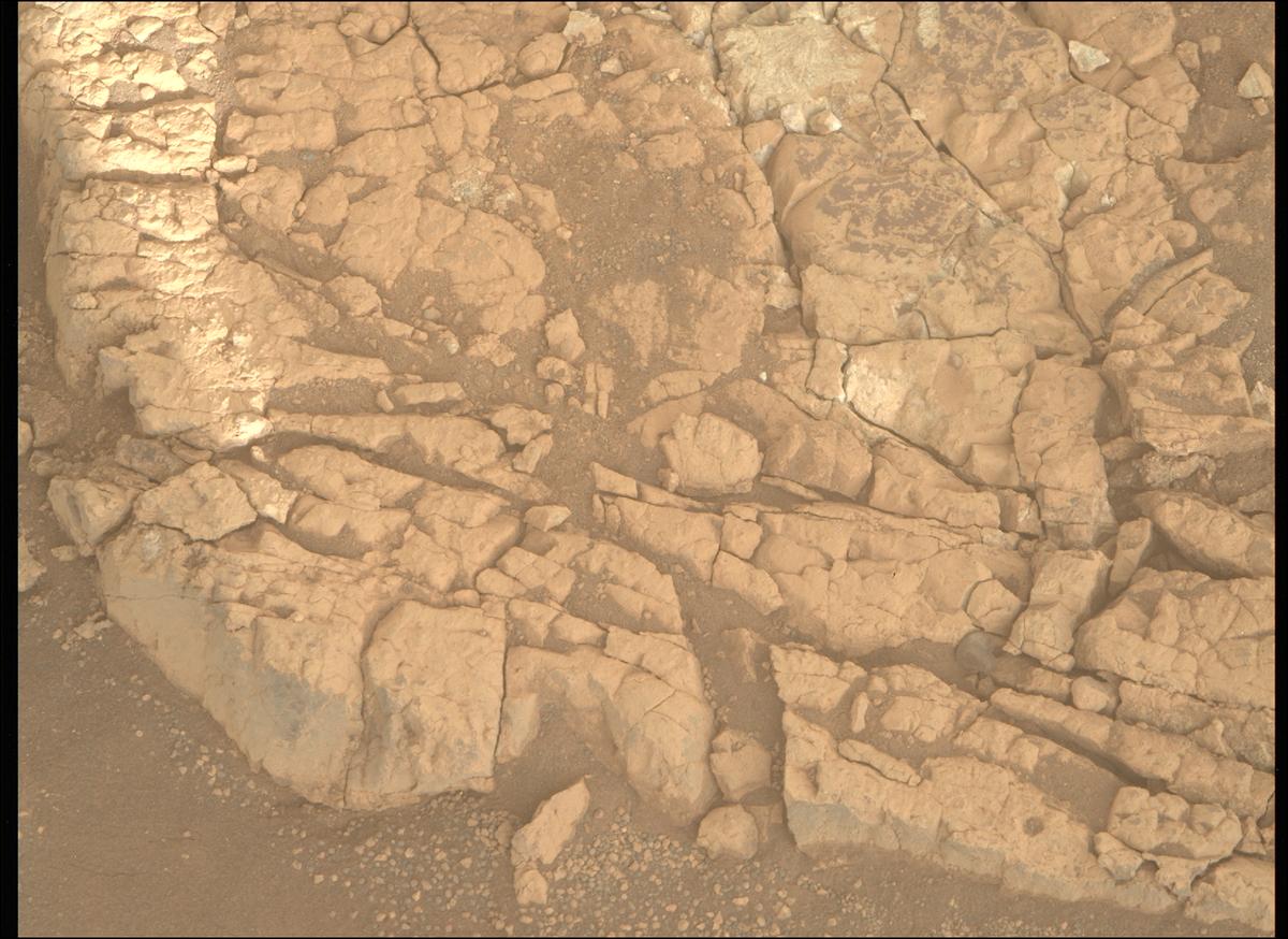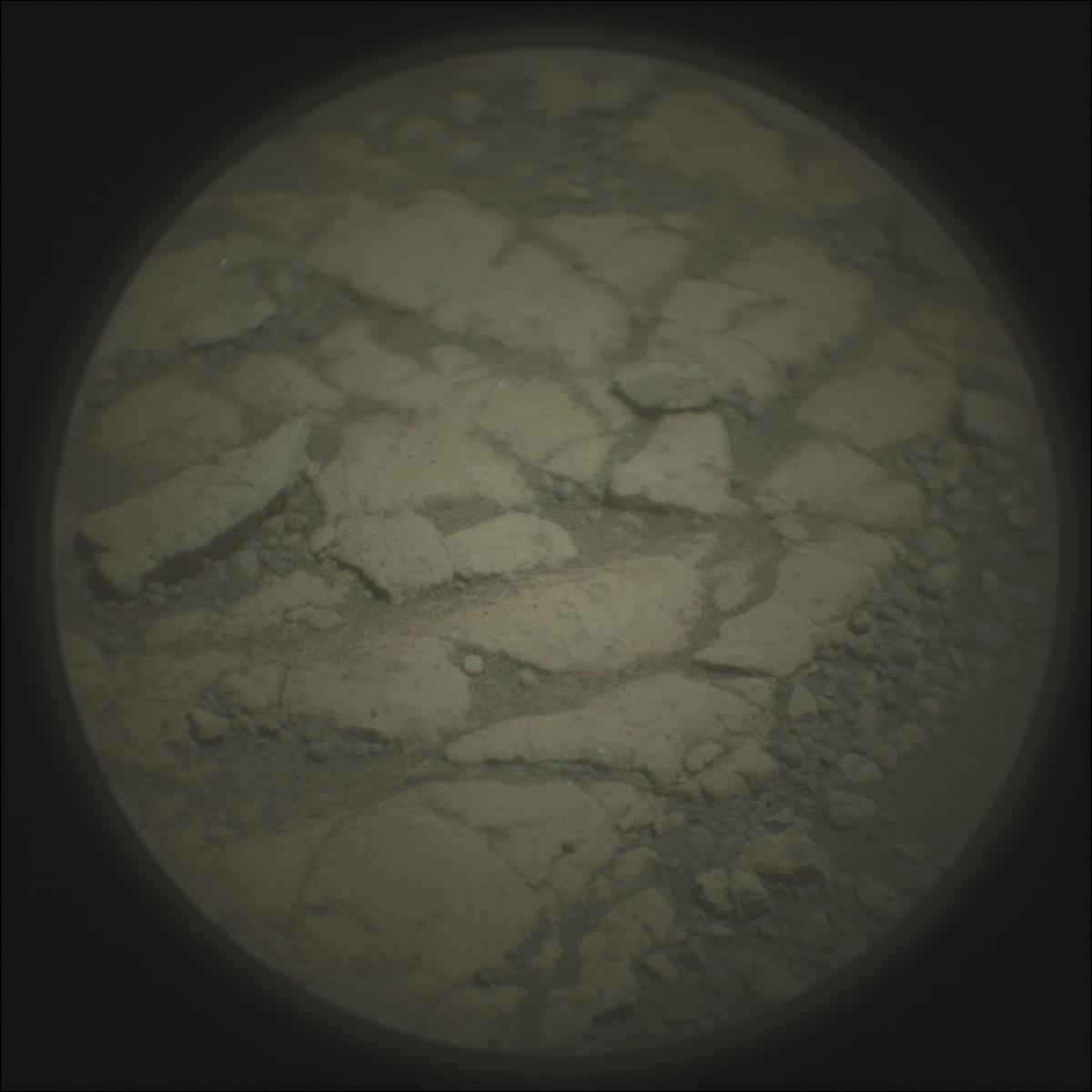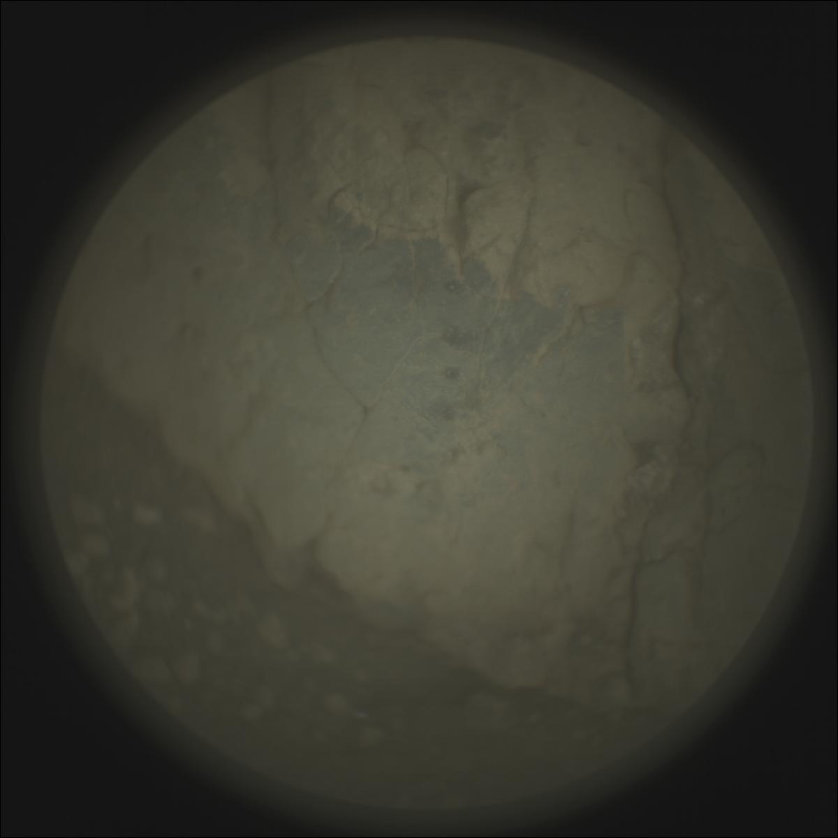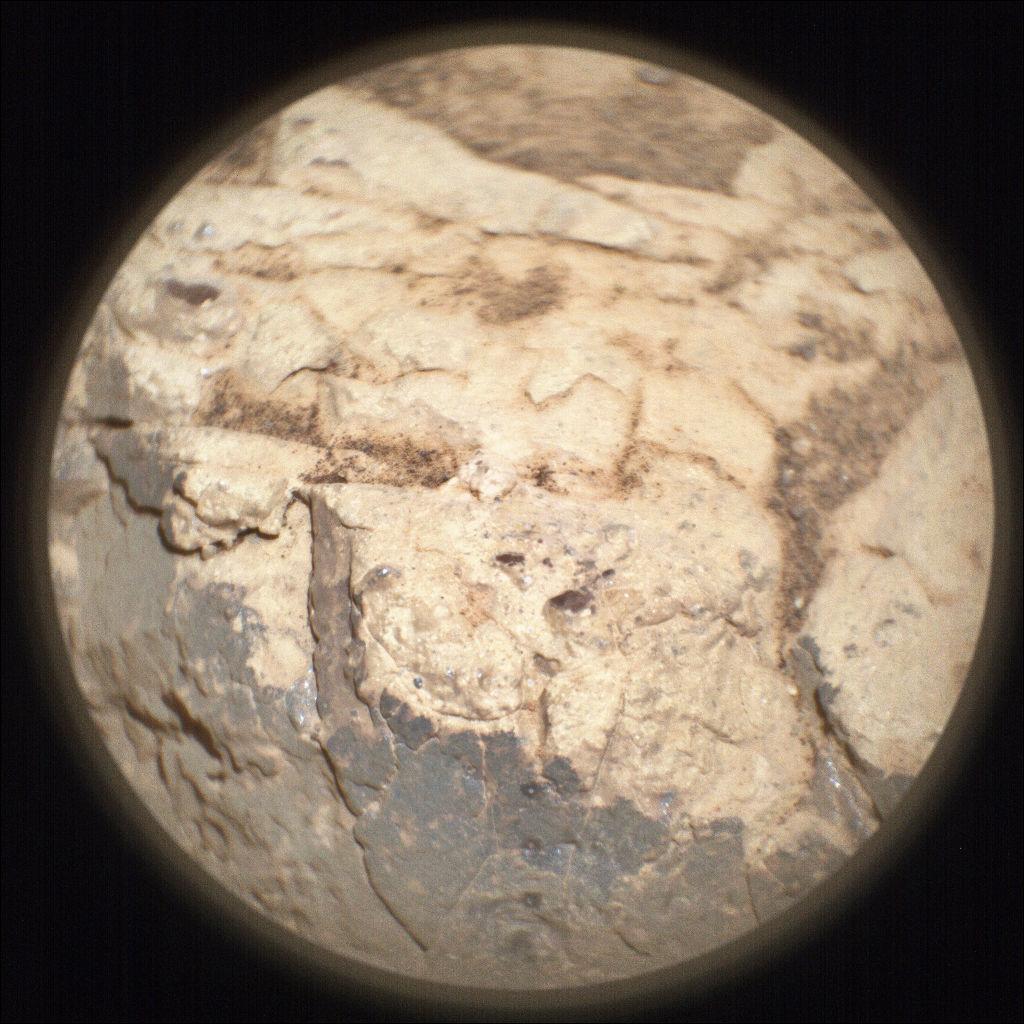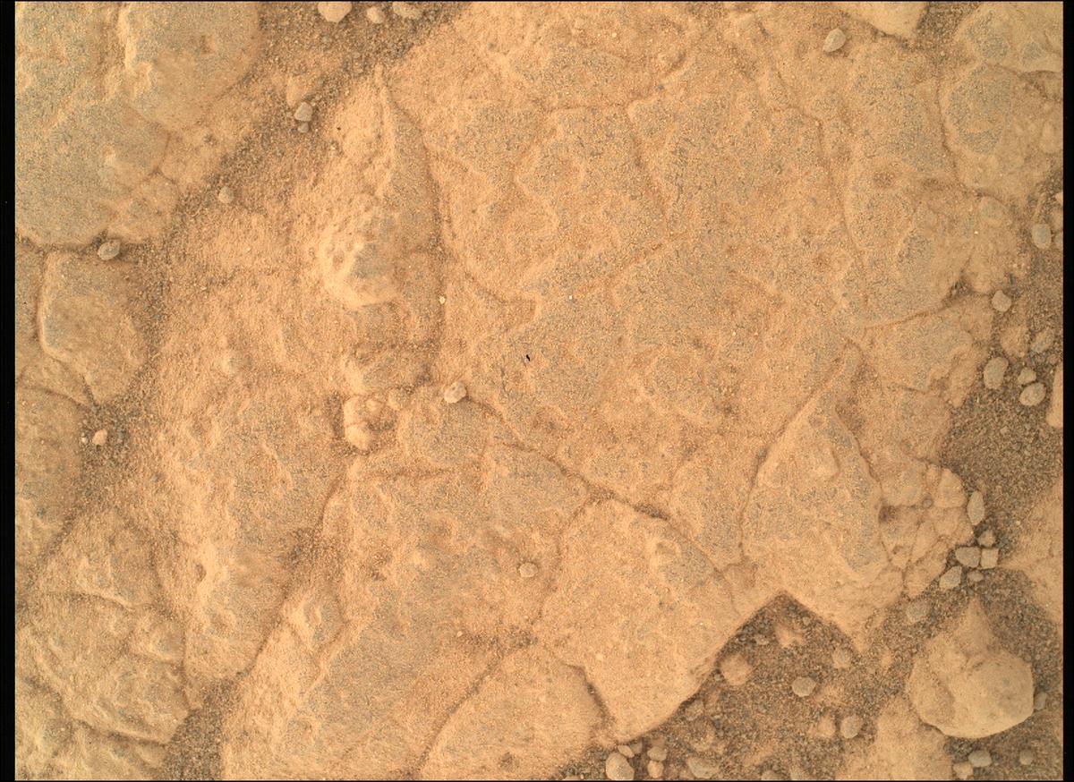 Сегодня 29 июня, сол 1549, и сегодня начала снимать камера Mastcam-Z. На этом снимке  правый камень и на нем в центре небольшое пятно непонятного происхождения, выше этого малого пятна  возможно потертости от шлифования (?):