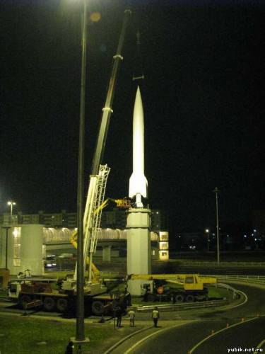 К реставрации ракеты приступили в мае. Ремонтировали на открытом воздухе, и свои коррективы в график работ вносили летние дожди. А вот сама установка ночью заняла менее 2х часов. Предстояло еще смонтировать подсветку, а на постаменте должно было появиться название "герб города".