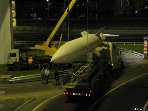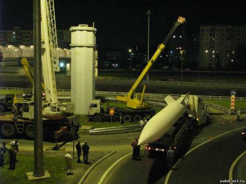На новый постамент Р-2, символ наукограда Королёва, везли со всеми предосторожностями.