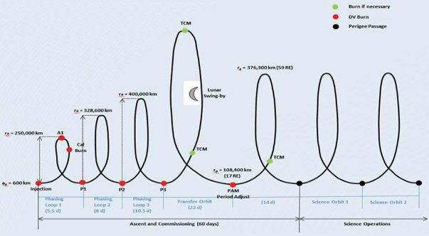 3 phasing loops in the #NASA timeline, followed by a Translunar Injection maneuver that sends #TESS to lunar flyby. Flyby raises perigee to mission altitude. At next perigee, Period Adjust Maneuver (PAM) will be performed to place it in a 2:1 resonant orbit with the Moon.
