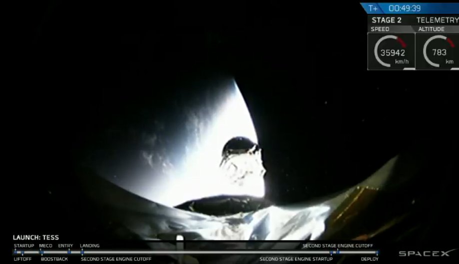 Second stage cutoff. TESS show now be in its phasing loop orbit. Separation in five minutes