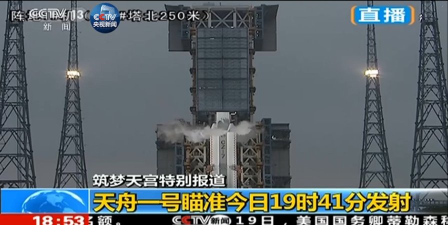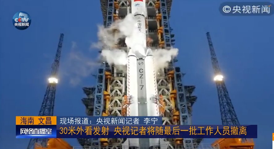 Around 45 mins to launch of #Tianzhou1, with visible venting of the Long March 7 cryogenic boosters on LC 201 at Wenchang.