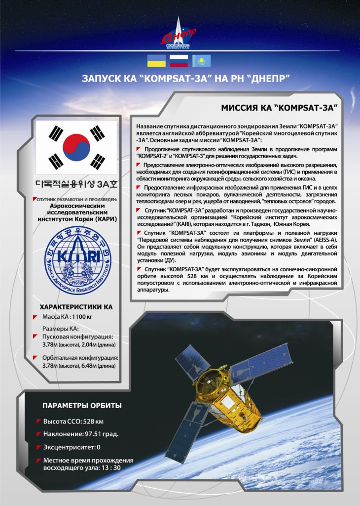 Kompsat-3A (Arirang-3A) – Днепр – Домбаровский (Ясный) – 26.03.2015, 01:08:46 ДМВ