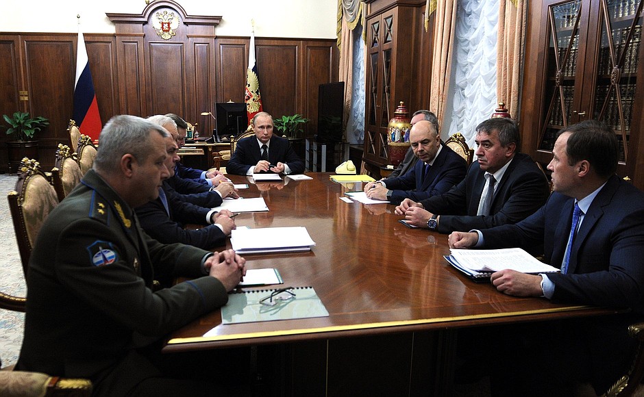 В совещании у Путина приняли участие руководитель администрации президента Сергей Иванов, вице-премьер Дмитрий Рогозин, помощник главы государства Андрей Белоусов, министр финансов Антон Силуанов, а также врио руководителя федерального космического агентства Александр Иванов, командующий Космическими войсками — заместитель главнокомандующего ВКС Александр Головко и генеральный директор Государственной корпорации "Роскосмос" Игорь Комаров.