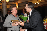 На торжественном вечере с поздравлениями и теплыми пожеланиями в адрес работников ГКНПЦ им. М.В. Хруничева выступили: заместитель Председателя Правительства РФ Дмитрий Рогозин, начальник штаба, первый заместитель командующего 15-ой армии ВКС особого назначения Анатолий Нестечук, генеральный директор ГК «Роскосмос» Игорь Комаров,  генеральный директор ГКНПЦ им. М.В. Хруничева Андрей Калиновский. В рамках праздничного мероприятия более 80 сотрудников Центра были отмечены государственными, ведомственными и местными наградами за высокие результаты в профессиональной деятельности.