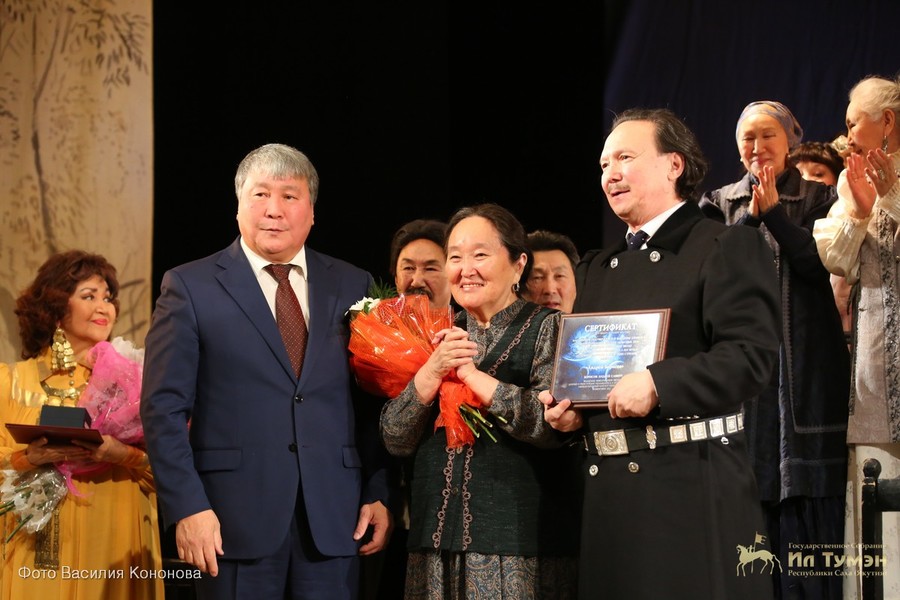 Торжественный вечер, посвященный 110-летию якутского национального театра и 65-летию народного артиста РФ, лауреата Государственных премий СССР, РФ, Якутии, Государственного советника Республики Саха (Якутия), художественного руководителя Саха академического театра имени П.А. Ойунского Андрея Борисова состоялся 4 декабря.