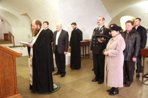 На богослужении присутствовали: председатель правления «Содружества православных деятелей культуры, науки и образования» Ю.А. Серов, председатель РО ДОСААФ России г. Москвы, заслуженный врач России кандидат медицинских наук полковник медицинской службы В.И. Ниниченко, помощник председателя ДОСААФ России В.И. Лутовинов, профессор Московского государственного областного университета Ю.И. Мезенцева, студенты МГОУ и Московского педагогического государственного университета, сотрудники и прихожане Новоспасского монастыря.