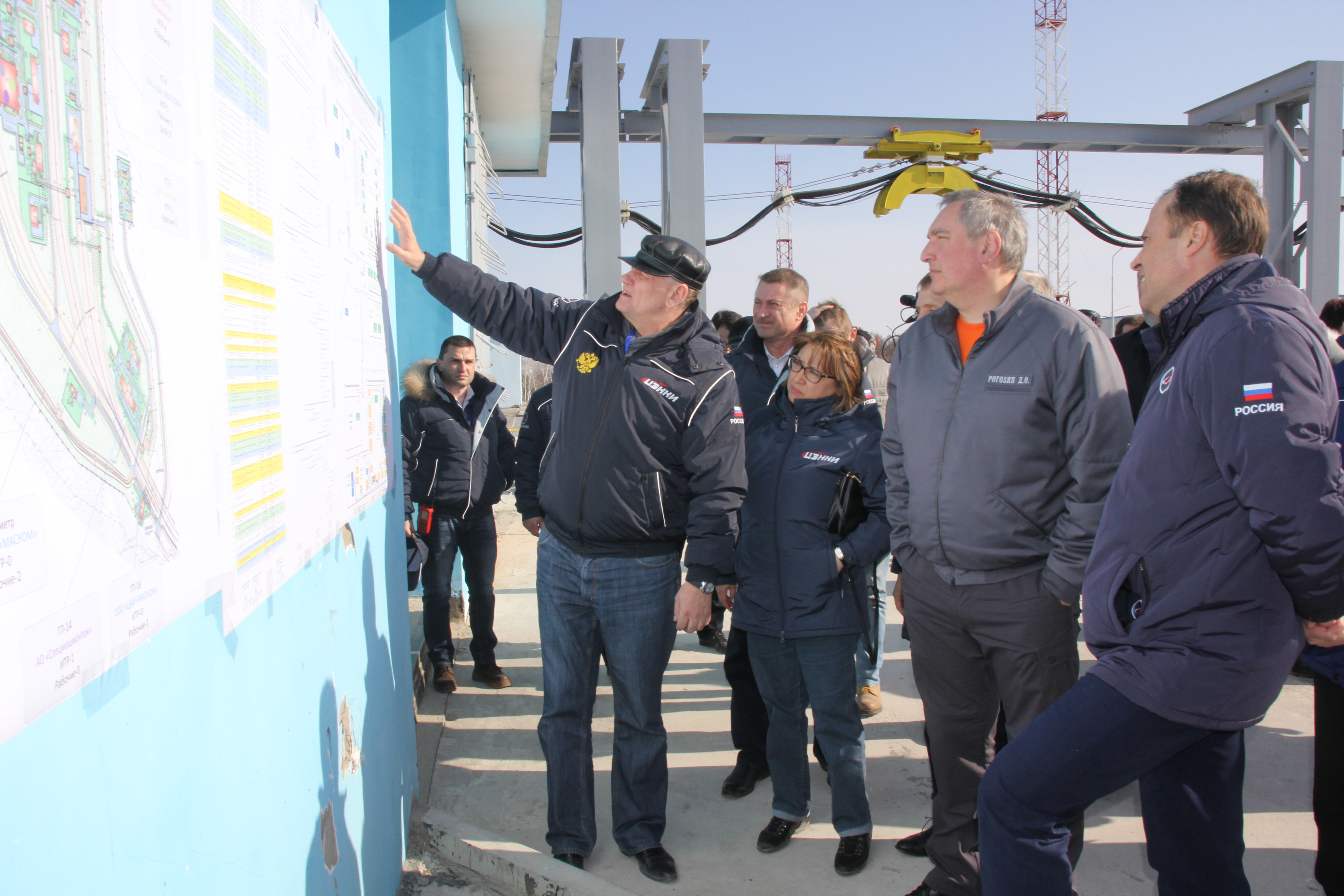 Заместитель Председателя Правительства РФ Дмитрий РОГОЗИН, Генеральный директор Госкорпорации «РОСКОСМОС» Игорь КОМАРОВ,  генеральный директор ФГУП «ЦЭНКИ» (Космодромы России) Рано ДЖУРАЕВА и специалисты предприятий РОСКОСМОСА посетили космодром ВОСТОЧНЫЙ - осмотрели технический и стартовый комплекс, где идет монтаж технологического оборудования для разгонного блока «Фрегат»; оценили ход строительных работ на Метрологической базе и в Инженерном корпусе Технического комплекса.