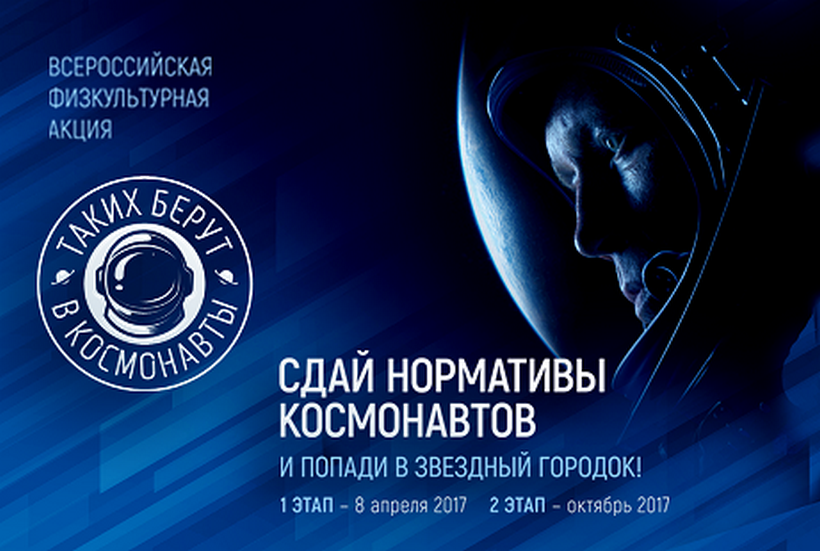 Ко дню космонавтики 8 апреля Ассоциация студенческих спортивных клубов России совместно с министерством образования и науки РФ, госкорпорацией «Роскосмос» запускает Всероссийскую физкультурную акцию «Таких берут в космонавты». Для участия приглашаются лица старше 16 лет, сообщается на сайте ассоциации студенческих спортивных клубов России