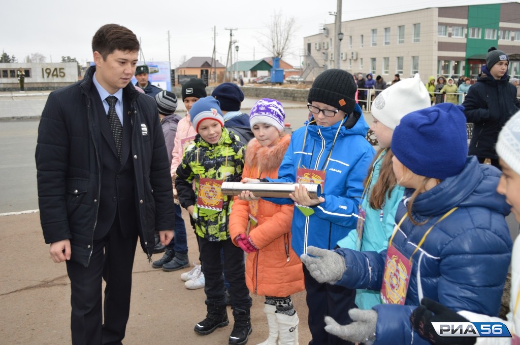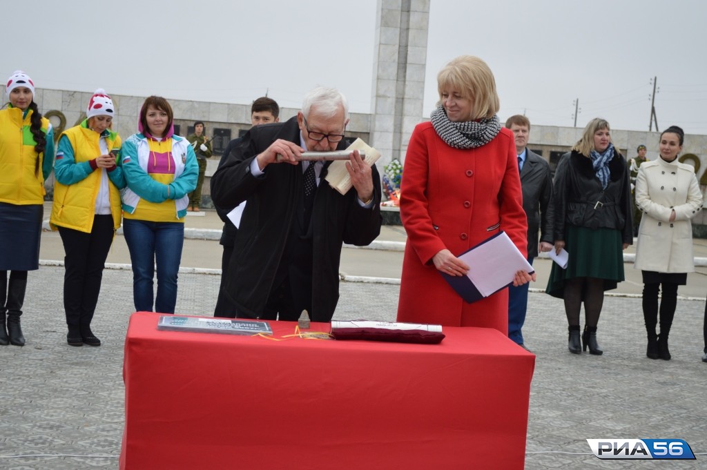Почетное право извлечь капсулу с посланием новоорчанам 2017 года было предоставлено Александру Мухину. Осторожно она передается в руки Александра Александровича, он, в свою очередь, бережно берет металлическую колбу и передает кадетам и учащимся 4-х классов, которые выстроились живым коридором от стен здания администрации до мемориального комплекса. Дети бережно, словно что-то очень важное, драгоценное, передают капсулу из рук в руки.