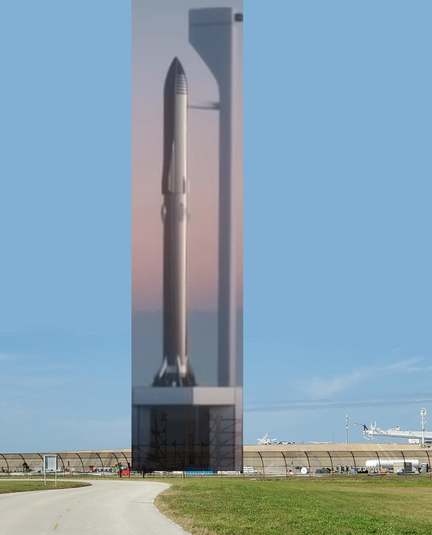 Стартовый комплекс под Starship быстро превратился из нескольких металлических балок в крупную конструкцию всего за последние несколько недель. По приблизительным оценкам, существующее строение уже составляет около 20 метров в высоту и имеет большие крепления для установки на него дополнительных конструкций, в то время как показанная в видео SpaceX пусковая установка составляла по оценкам примерно на 25-30 метров в высоту.