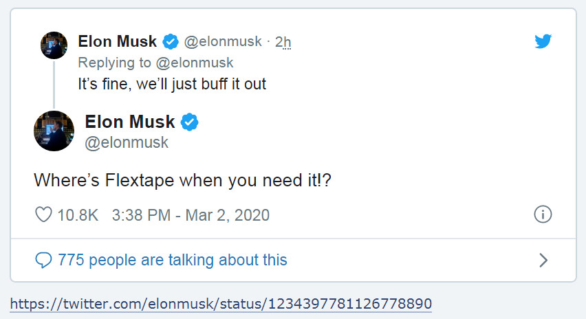 https://twitter.com/elonmusk/status/1234400445847736320?s=20