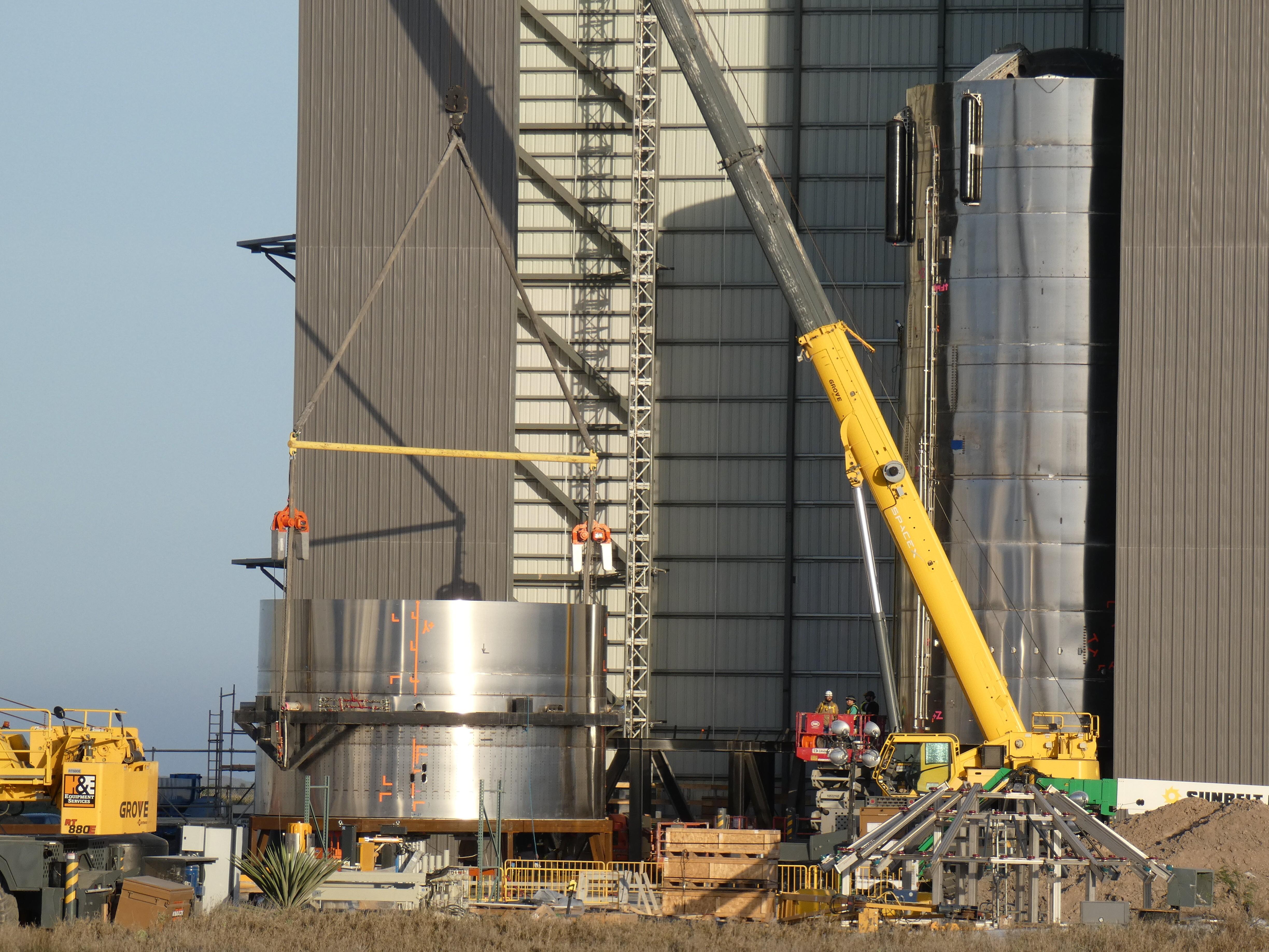 Это последнее фото с такого ракурса, на котором мы можем увидеть, что находится внутри высокого ангара. SpaceX закрыла тропинку, по которой можно было обойти производственную зону с северо-западной стороны :(