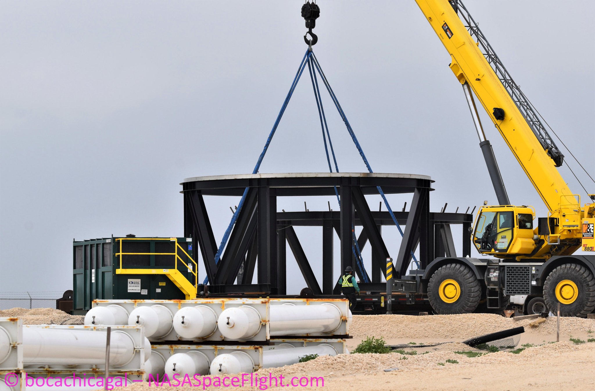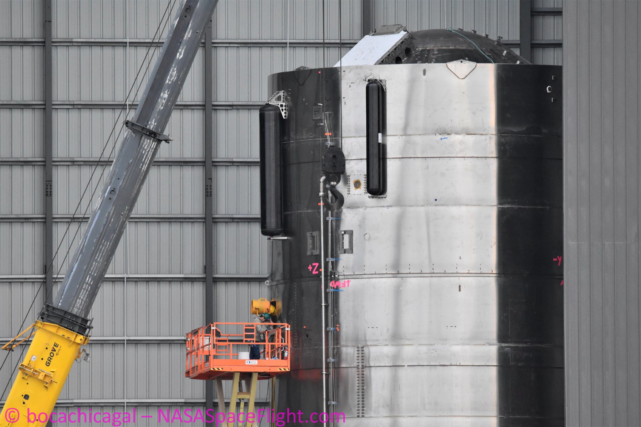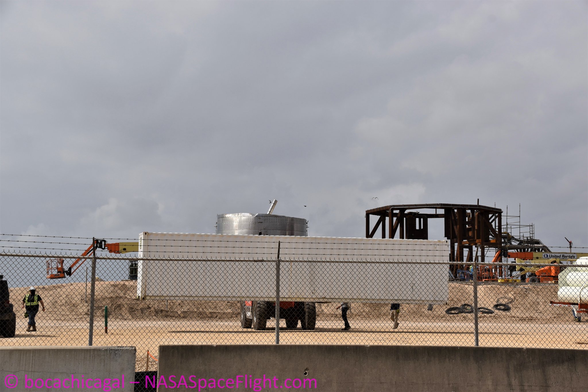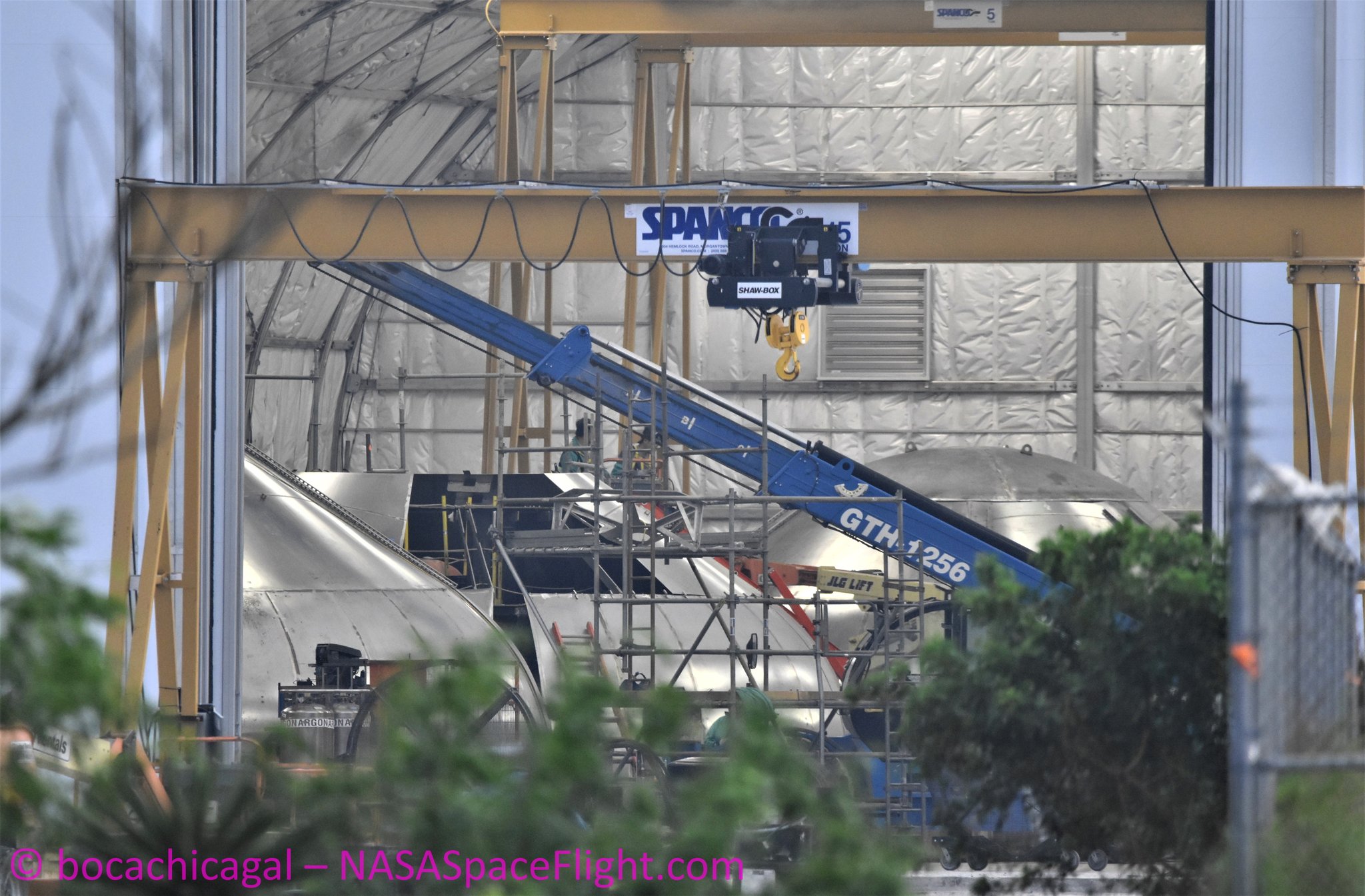 Прототип SN4 продолжает готовиться к приему секции двигателя, пока крыша ангара изолируется, а новые куски металла перемещаются.